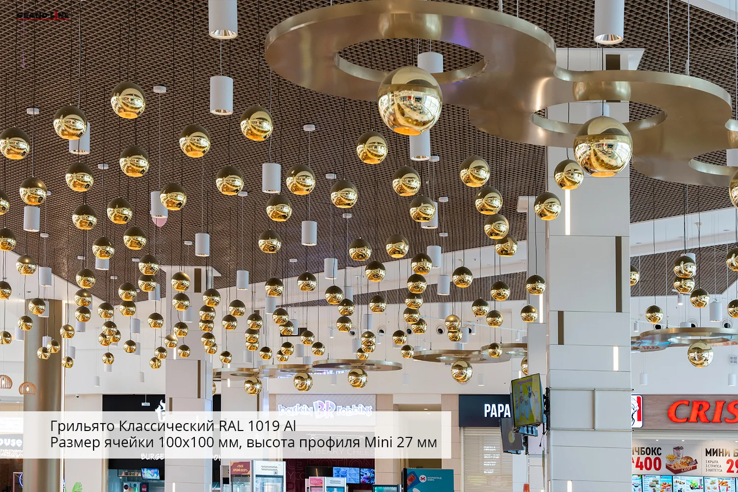Грильято — подвесной потолок с ячейками из U-образных профилей в алюминии или оцинкованной стали.